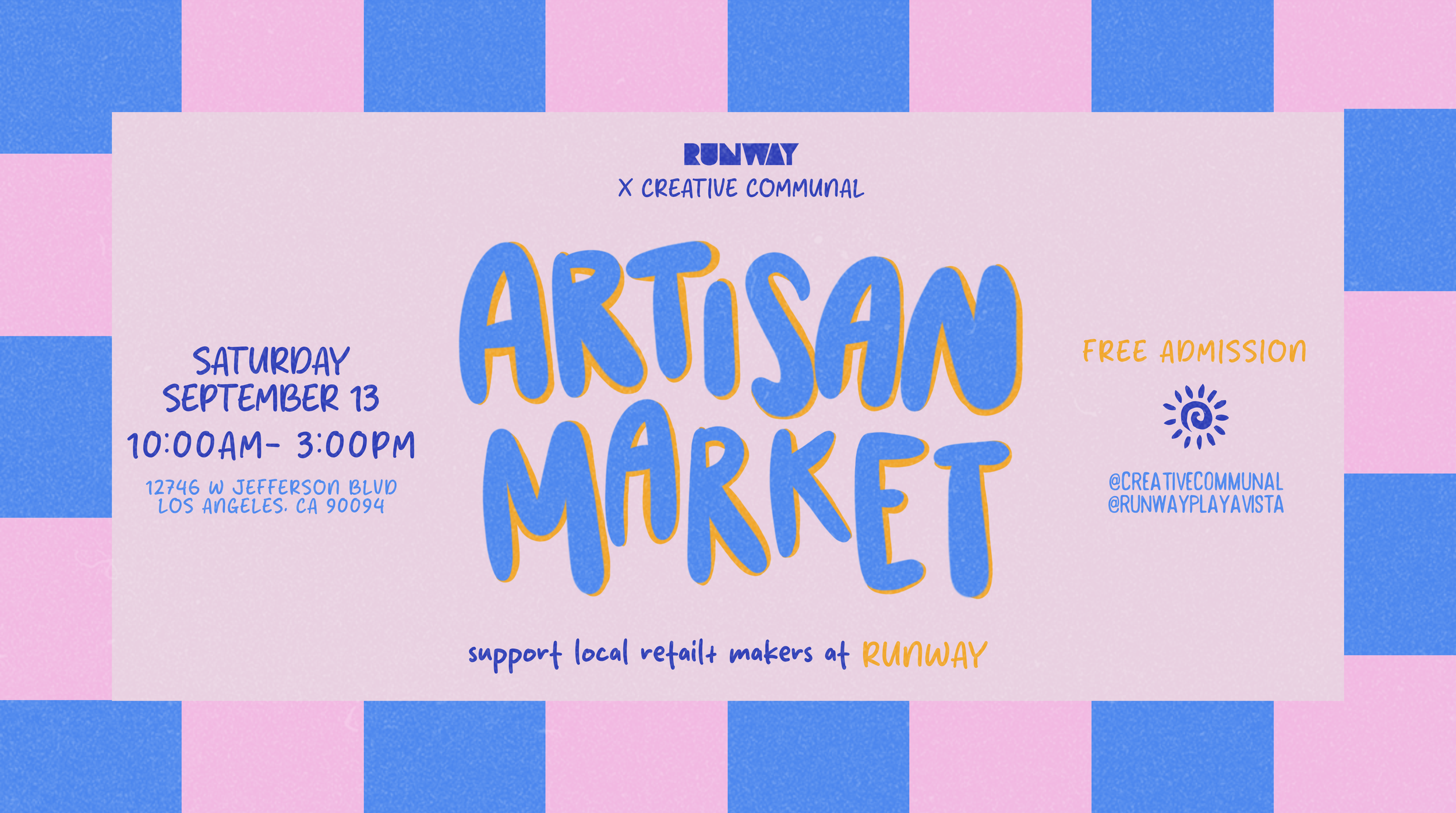 🍂✨ Soak up the vibes at the September Artisan Market @ RUNWAY — hosted by Creative Communal! Bring your whole crew (pups included 🐶) and explore handcrafted treasures from talented local makers who pour heart into every piece 💖. Think cozy fall feels, great music, and all the good vibes — don’t miss it! 😎🍁🎶